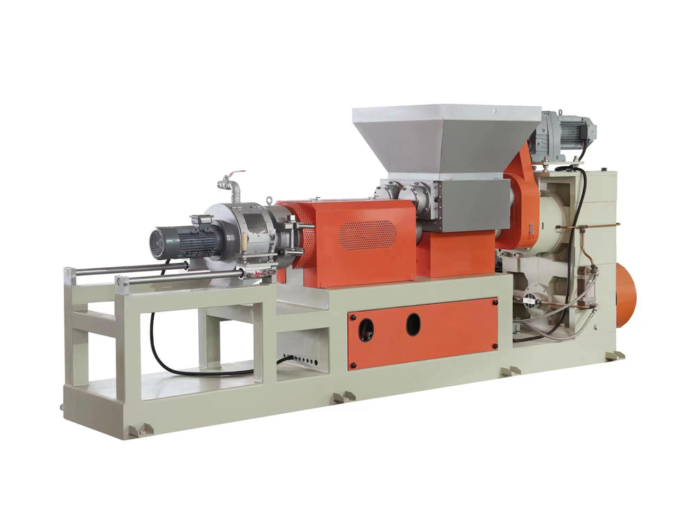 此機臺用于PVC,EVA,TPR等塑膠原料的生產(chǎn),包括主機,雙腕入料,模頭切粒等系統(tǒng)將密煉機攪拌好的原料經(jīng)雙腕擠入造粒機內(nèi)經(jīng)螺桿擠出后切成粒子,此機臺操作簡單
